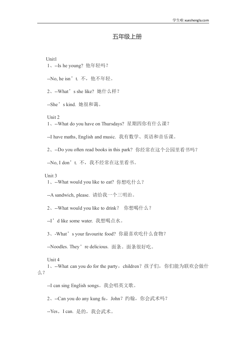 首页小学英语五年级五年级-英语人教版新起点常用句子