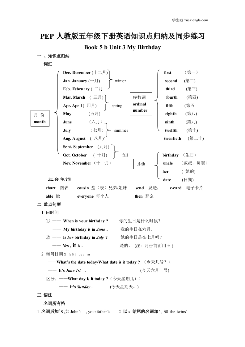 首页小学英语五年级人教PEP版五年级下册英语Unit3知识点归纳及同步练习