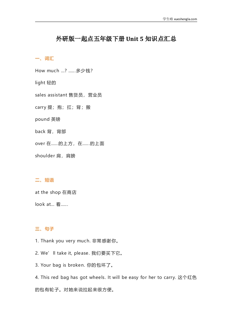 首页小学英语五年级外研版一起点五年级下册Unit 5知识点汇总