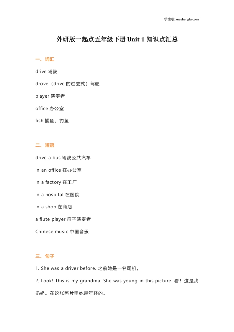 首页小学英语五年级外研版一起点五年级下册Unit 1知识点汇总