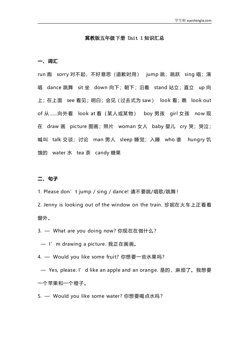 冀教版五年级下册 Unit 1知识汇总