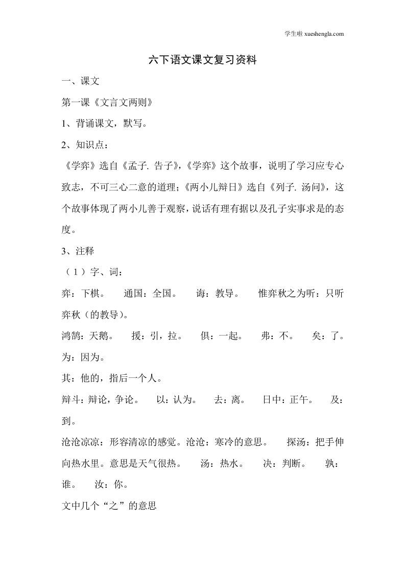 小学六年级下册语文课文复习资料-根据课文内容填空