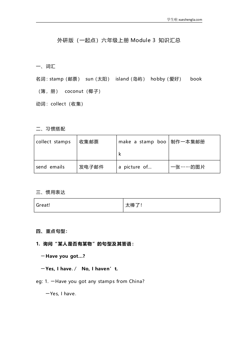 首页小学英语六年级外研版一起点六年级上册Module3知识点汇总