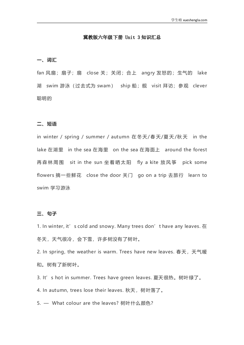 首页小学英语六年级冀教版六年级下册 Unit 3知识汇总