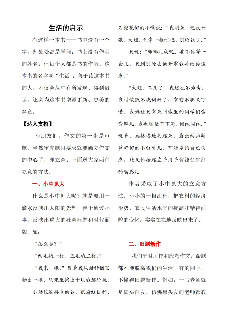 首页小学语文六年级小学语文6年级上册课外作文指导——(生活的启示)