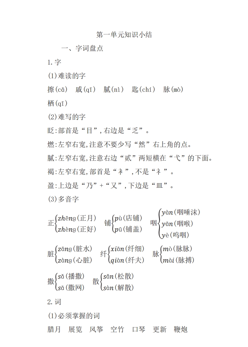 六年级下册语文部编版知识要点汇总