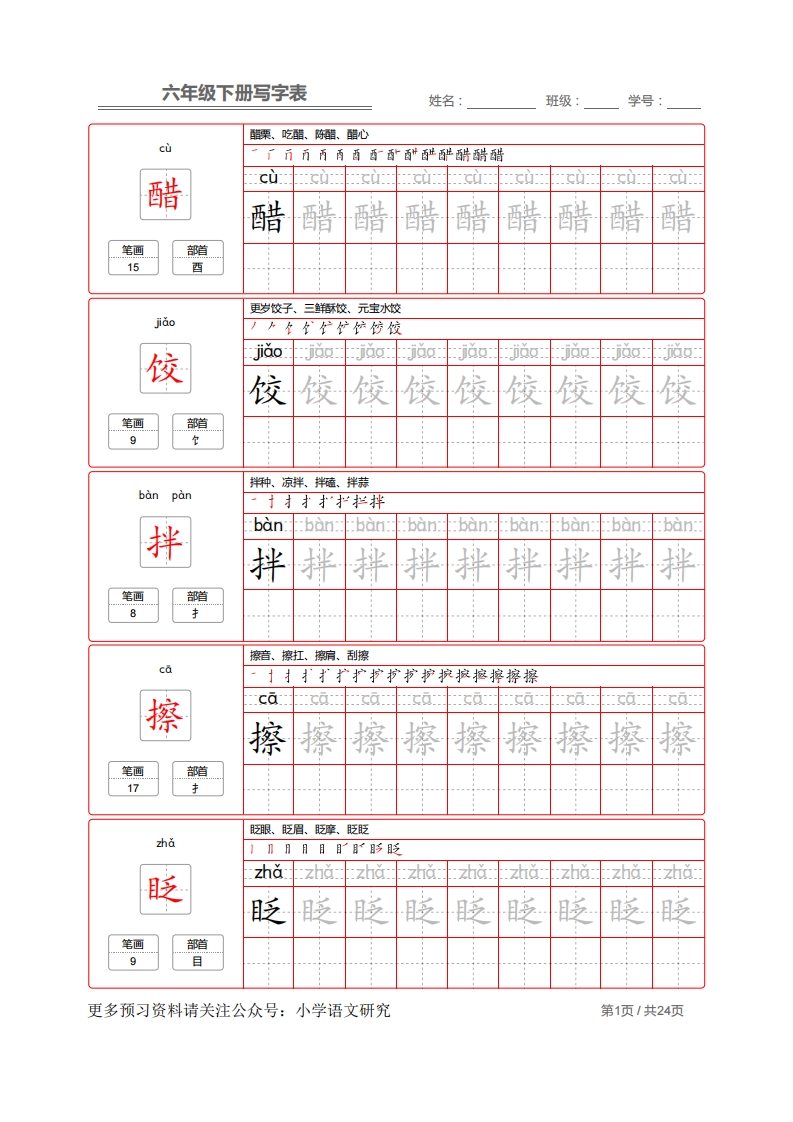 首页小学语文六年级统编版语文六年级(下)写字表生字练字帖2