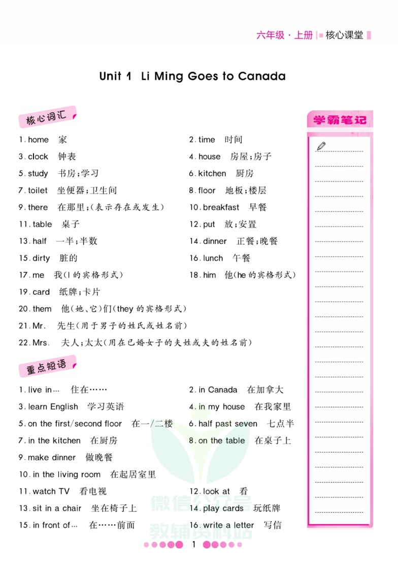 首页小学英语六年级六年级上册英语冀教版知识清单