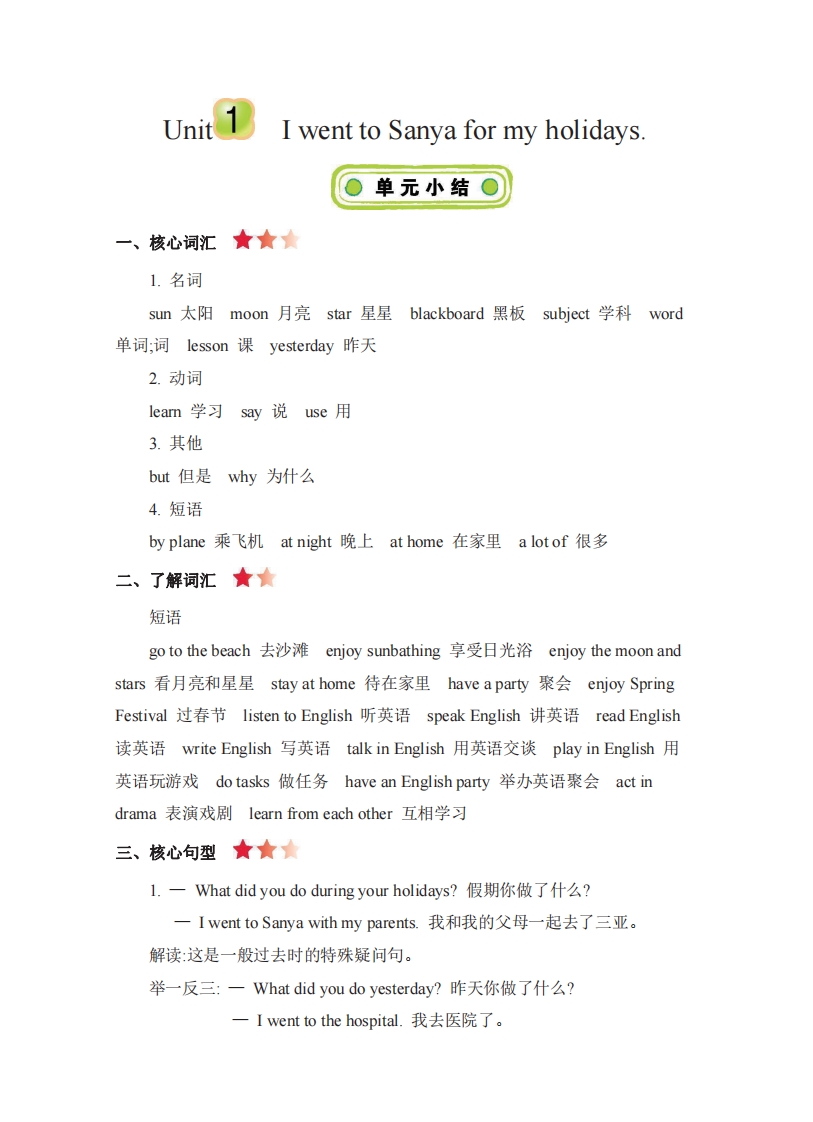六年级下册英语人教精通版知识要点汇总