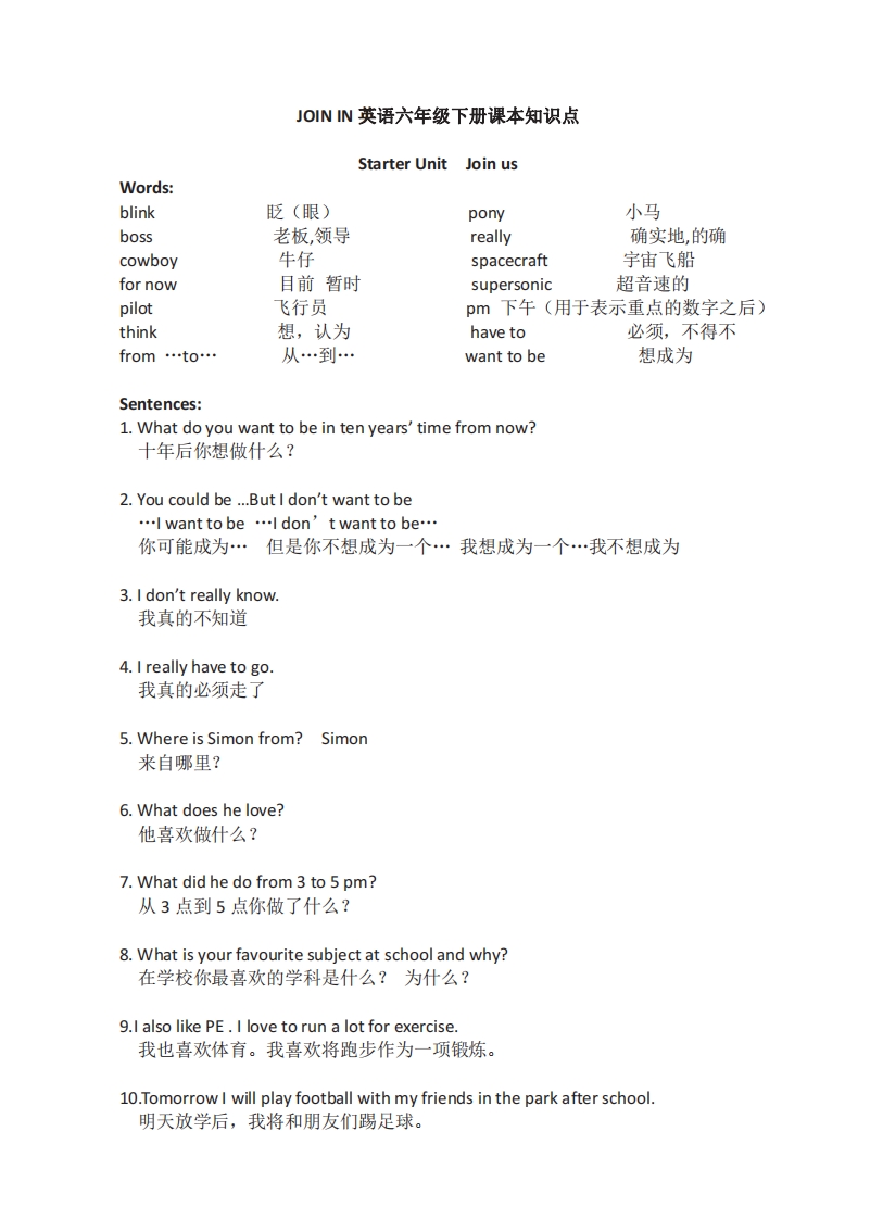 首页小学英语六年级六年级下册英语剑桥Join in知识要点汇总