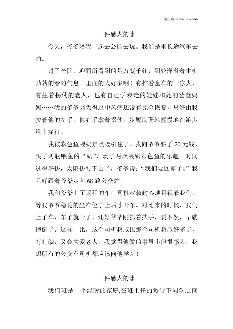 《一件感人的事》专题作文大全 91页