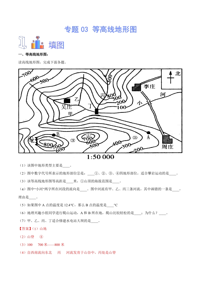 首页中考地理专题03 等高线地形图(教师版)-初中地理识图速记手册与变式演练(全国通用)