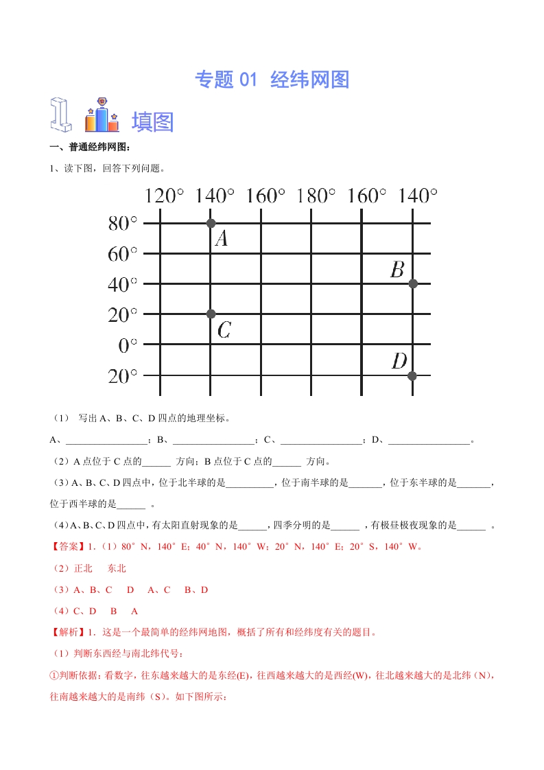 首页中考地理专题01 经纬网图(教师版)-初中地理识图速记手册与变式演练(全国通用)
