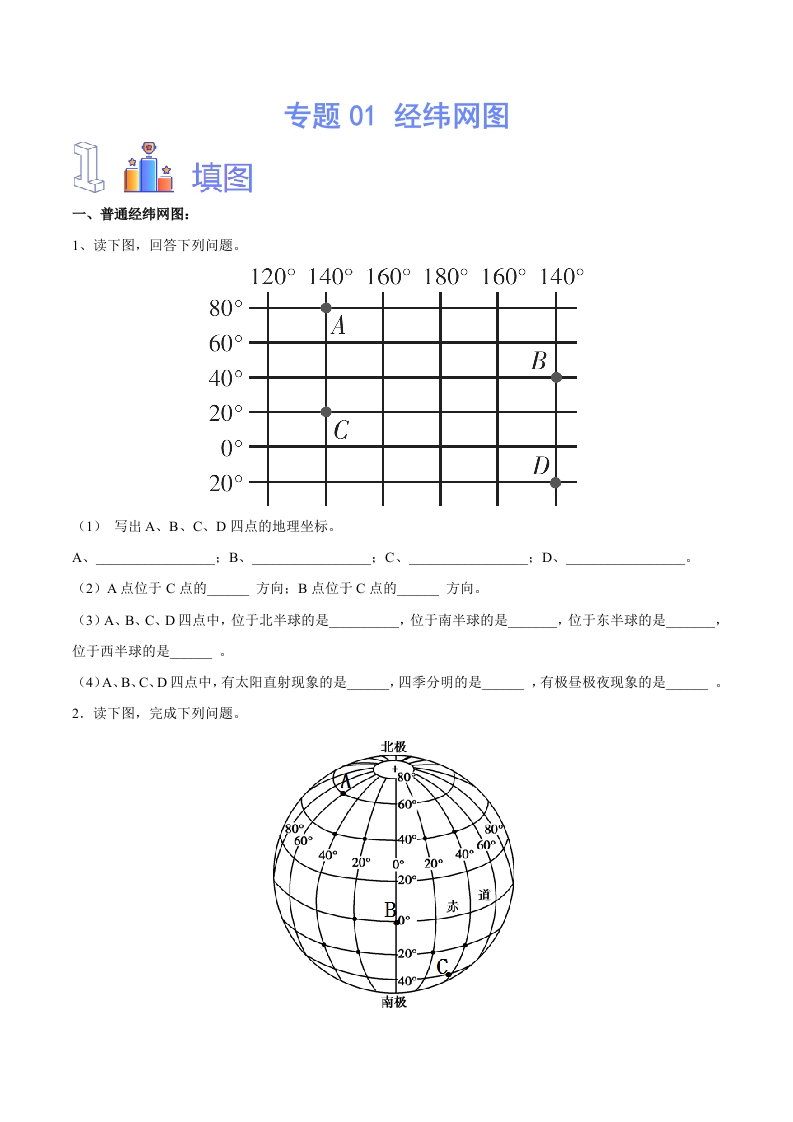 首页中考地理专题01 经纬网图(学生版)-初中地理识图速记手册与变式演练(全国通用)