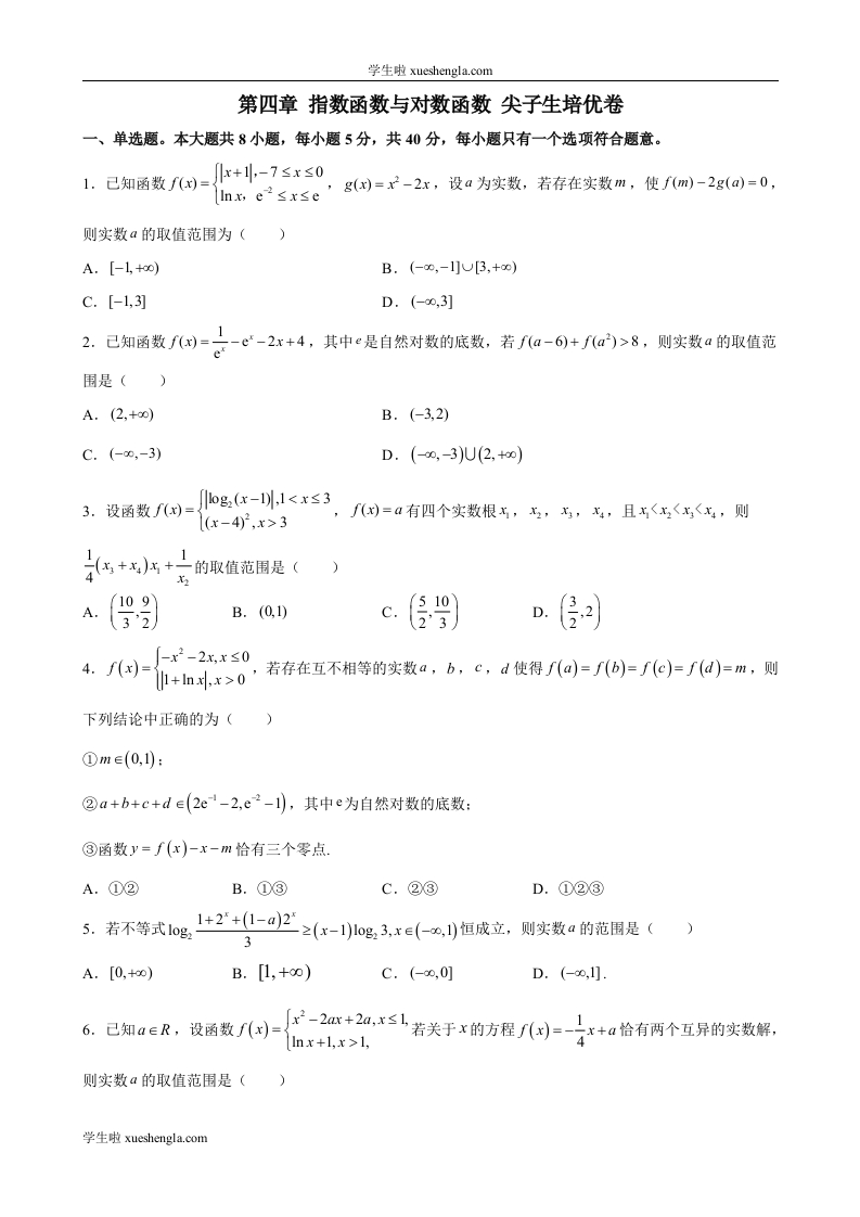 第四章 指数函数与对数函数 尖子生培优卷 -高一上学期数学人教A版(2019)必修第一册