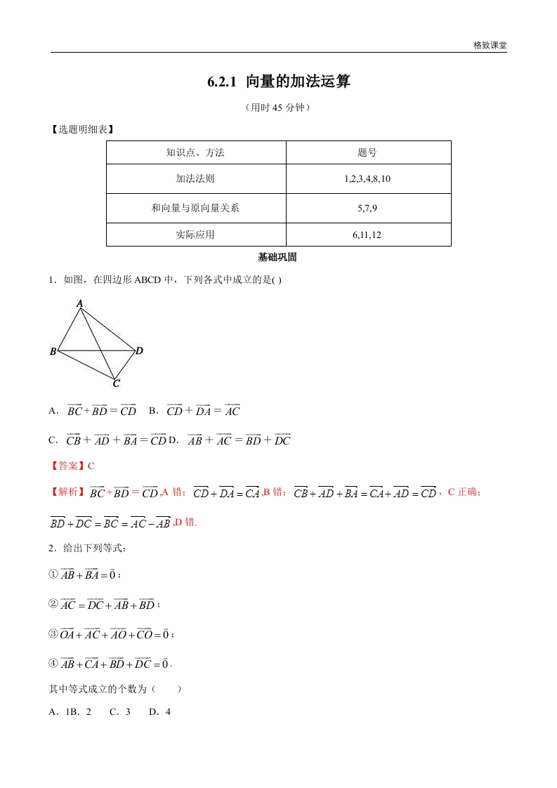 首页高中数学高一【新教材精创】6.2.1 向量的加法运算 同步练习(2)(解析版)