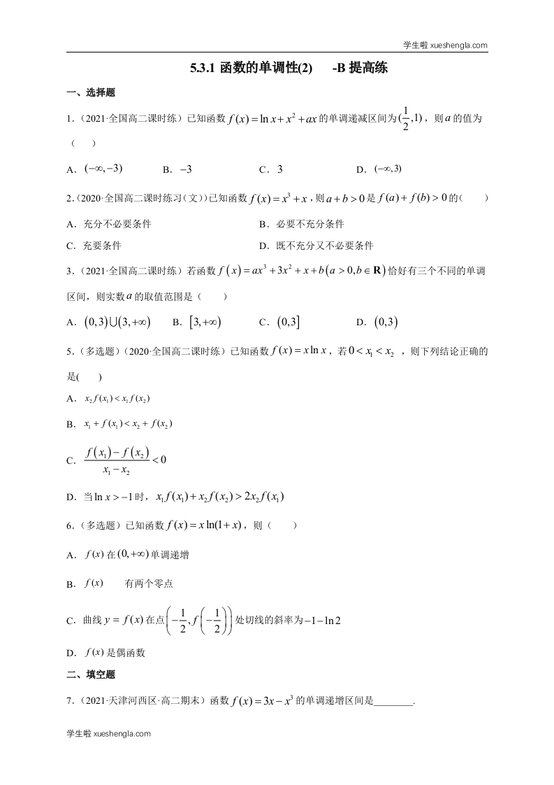 首页高中数学高二5.3.1函数的单调性(2) -B提高(学生版)