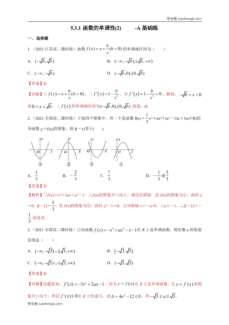 首页高中数学高二5.3.1函数的单调性(2) -A基础练(解析版)