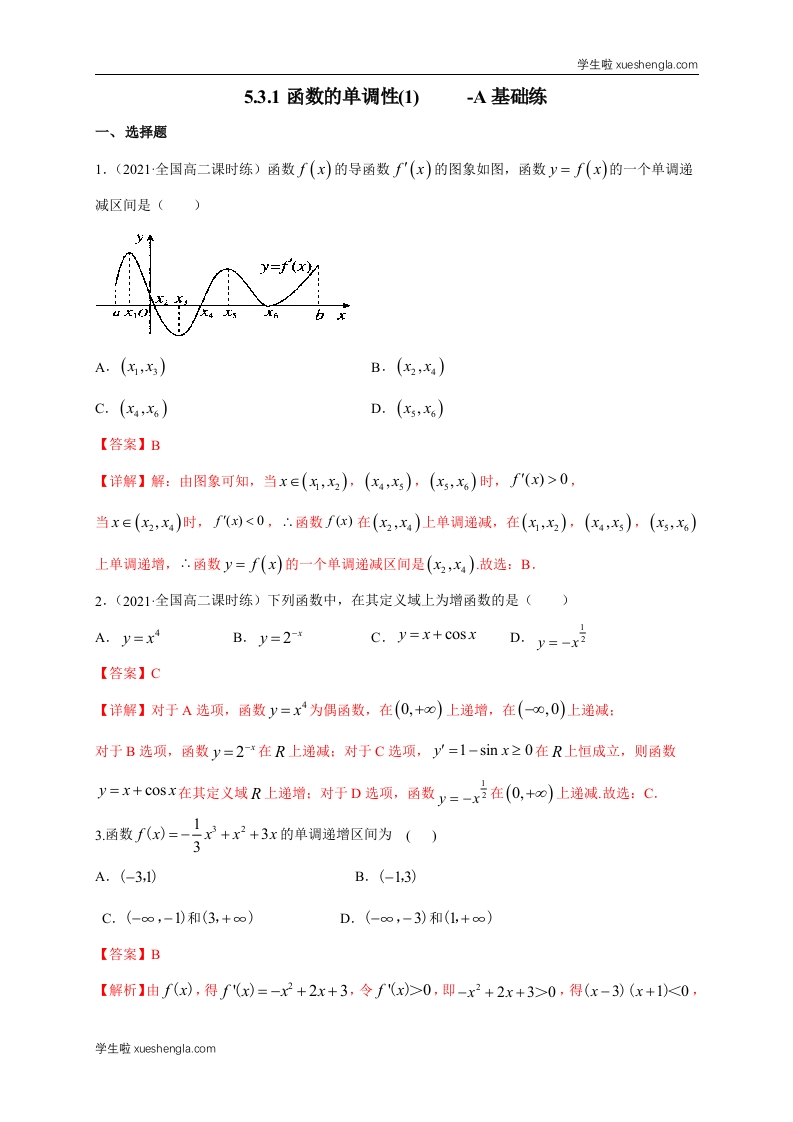 首页高中数学高二5.3.1函数的单调性(1) -A基础练(解析版)