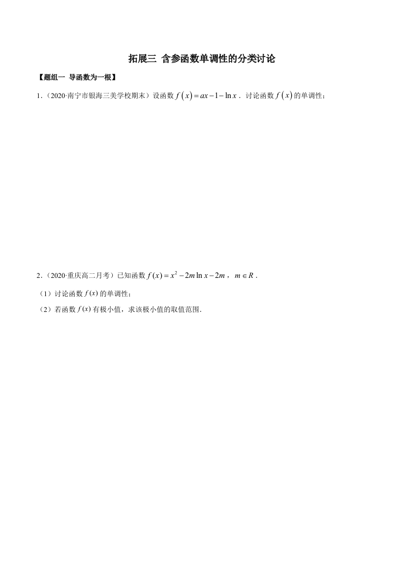 拓展三 含参函数单调性的分类讨论(精练)(原卷版)