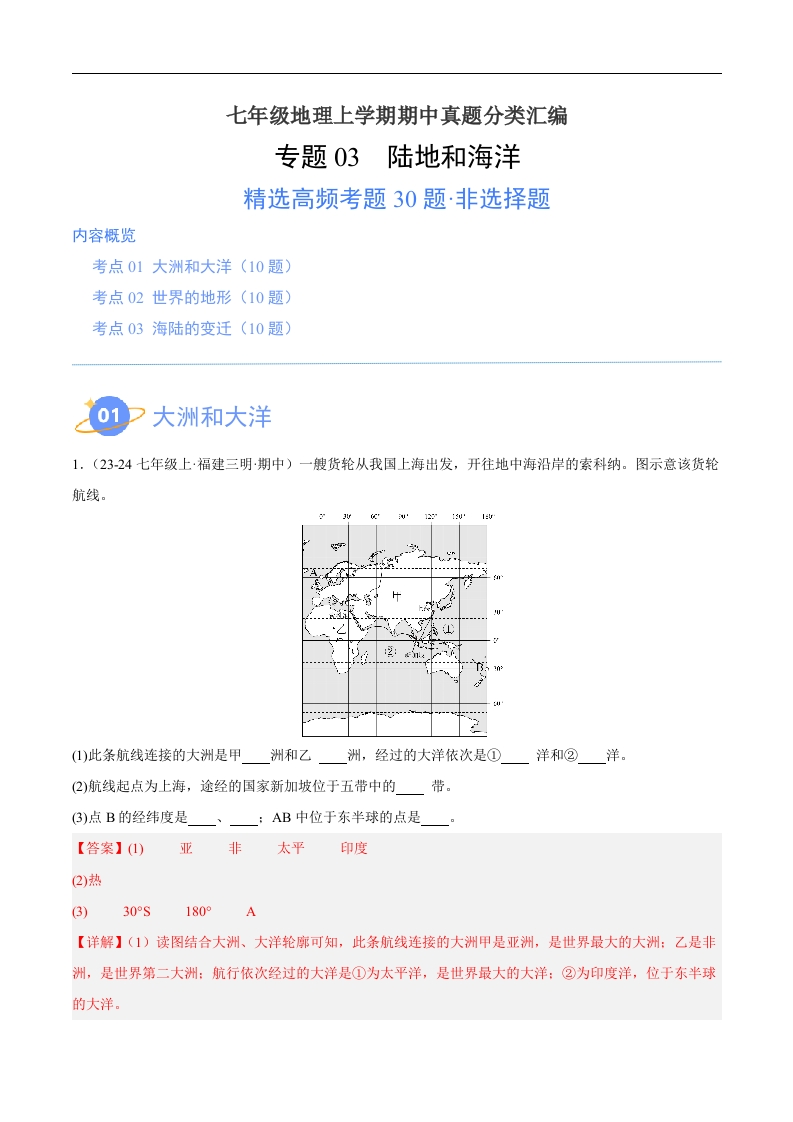 专题03 陆地和海洋(高频非选择题30题)-【好题汇编】备战2024-2025学年七年级地理上学期期中真题分类汇编(人教版2024)(解析版)