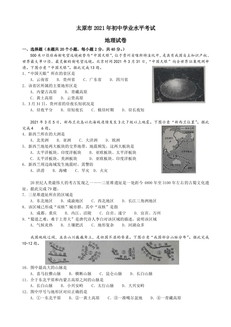 首页初中地理八年级2021年山西省太原市中考地理真题及答案