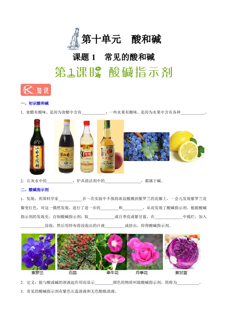 专题10.1.1 酸碱指示剂(第1课时)九年级化学人教版(下册)