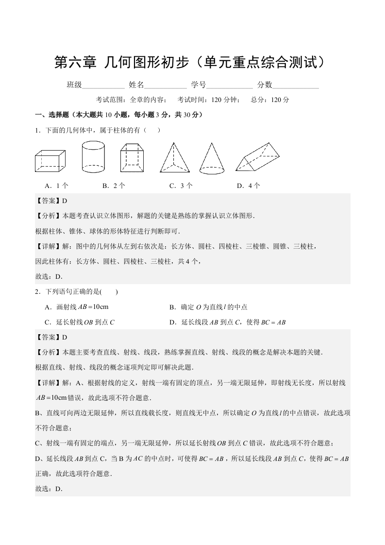 第六章 几何图形初步(单元重点综合测试)(解析版)