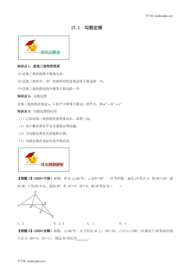 17.1 勾股定理(原卷版)-2020-2021学年度八年级数学下册精讲精练(人教版)