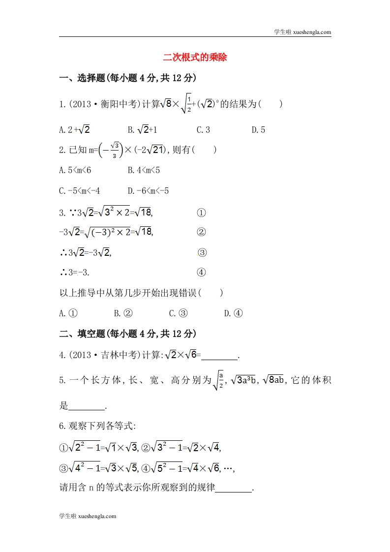 八年级数学下册知识点汇聚测试卷:二次根式的乘除初级测试(含详解) (1)
