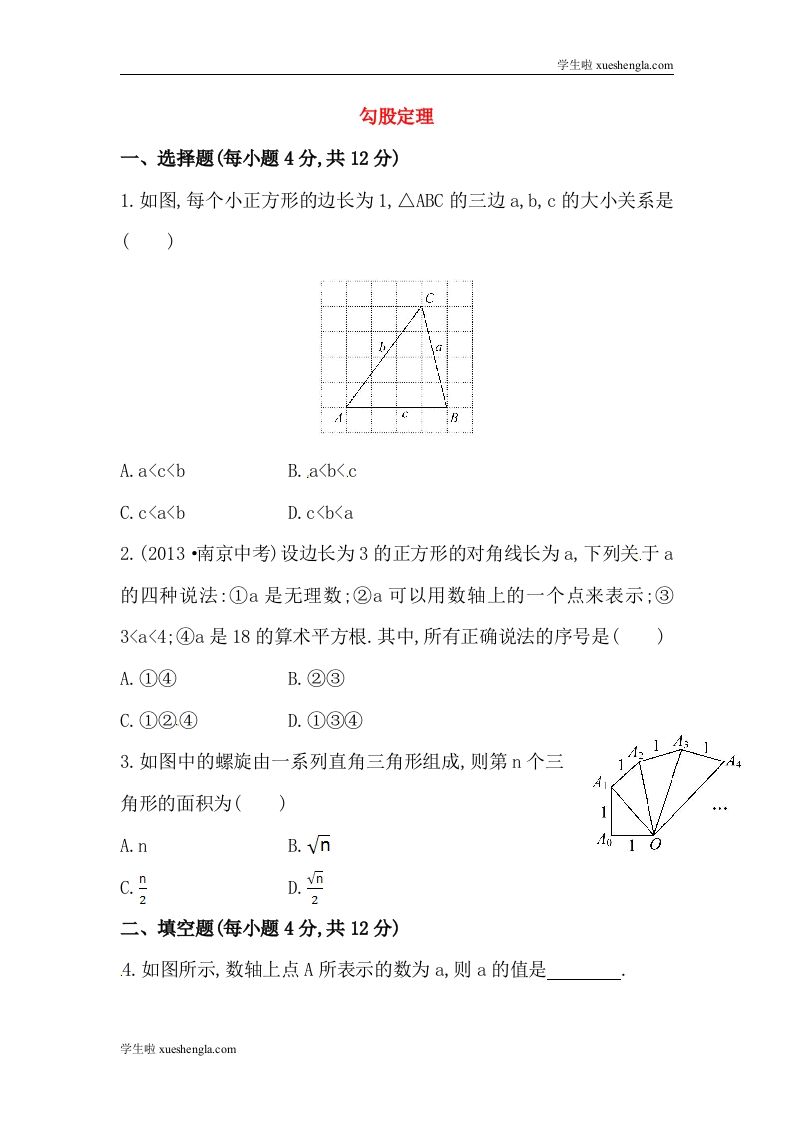 八年级数学下册知识点汇聚测试卷:勾股定理高级测试(含详解) (1)