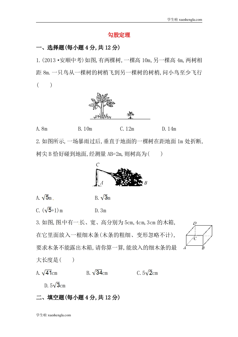 八年级数学下册知识点汇聚测试卷:勾股定理深入测试(含详解) (1)