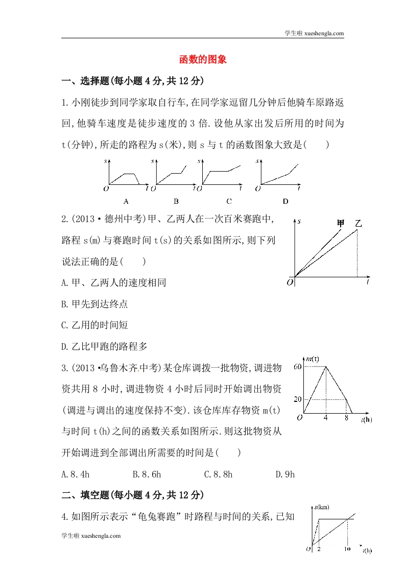八年级数学下册知识点汇聚测试卷:函数的图象初级测试(含详解) (1)