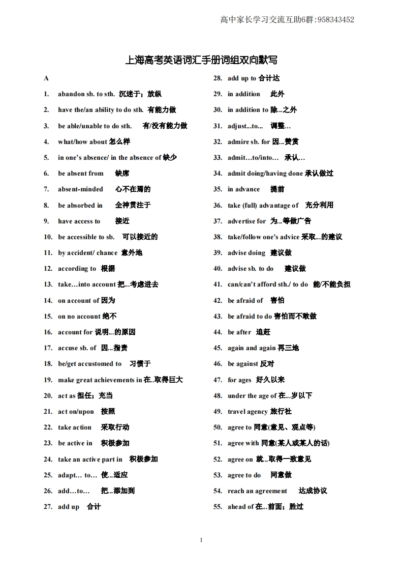 2024届上海高考英语词汇手册配套词组(中英集合版)