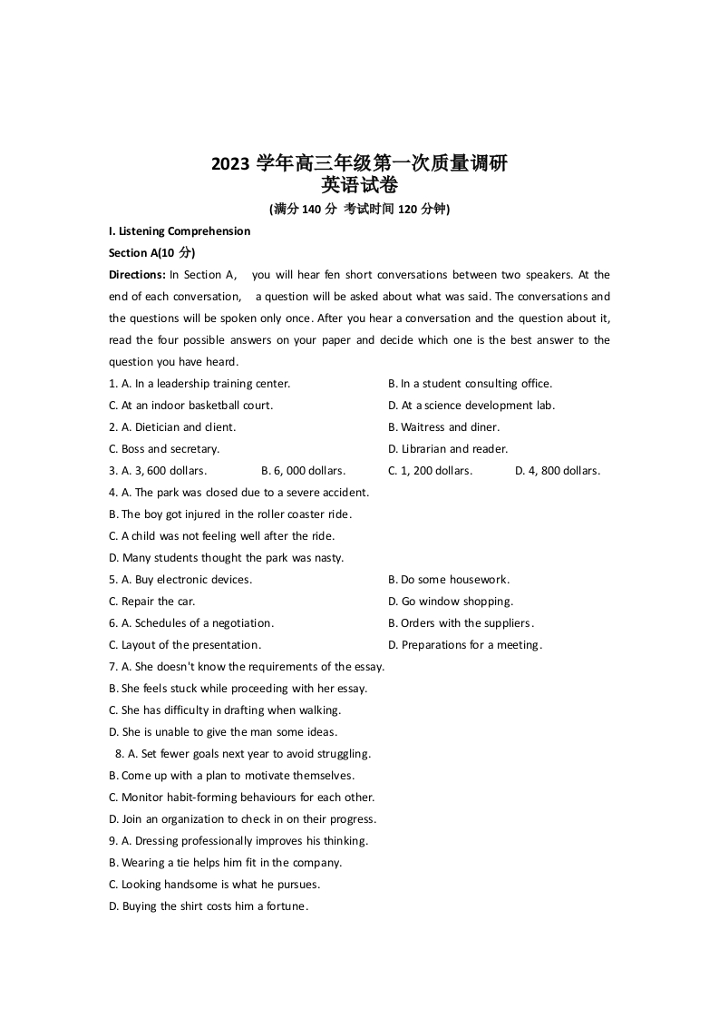 首页高考英语2024届上海嘉定区高三英语一模(官方版)