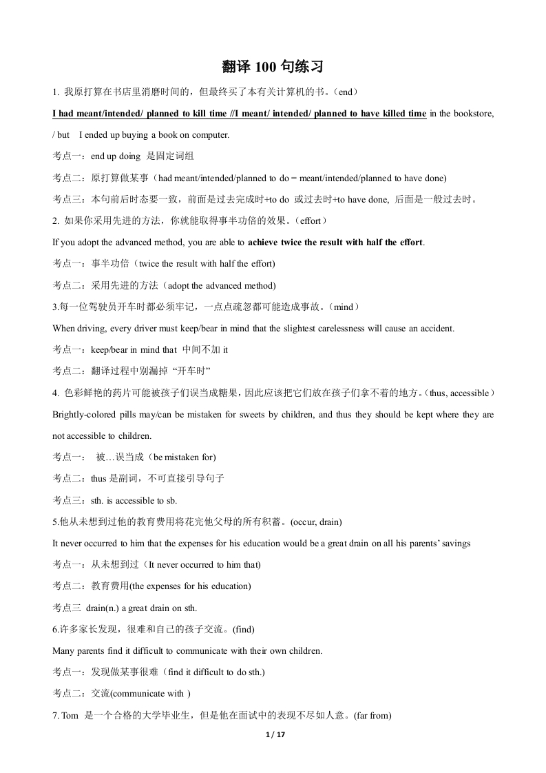 首页高考英语上海市高中英语翻译练习100句-详细解析