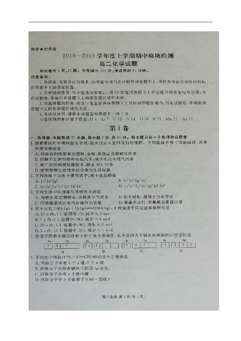 衡水中学2018-2019学年高二上学期期中考试化学试题(原卷版)