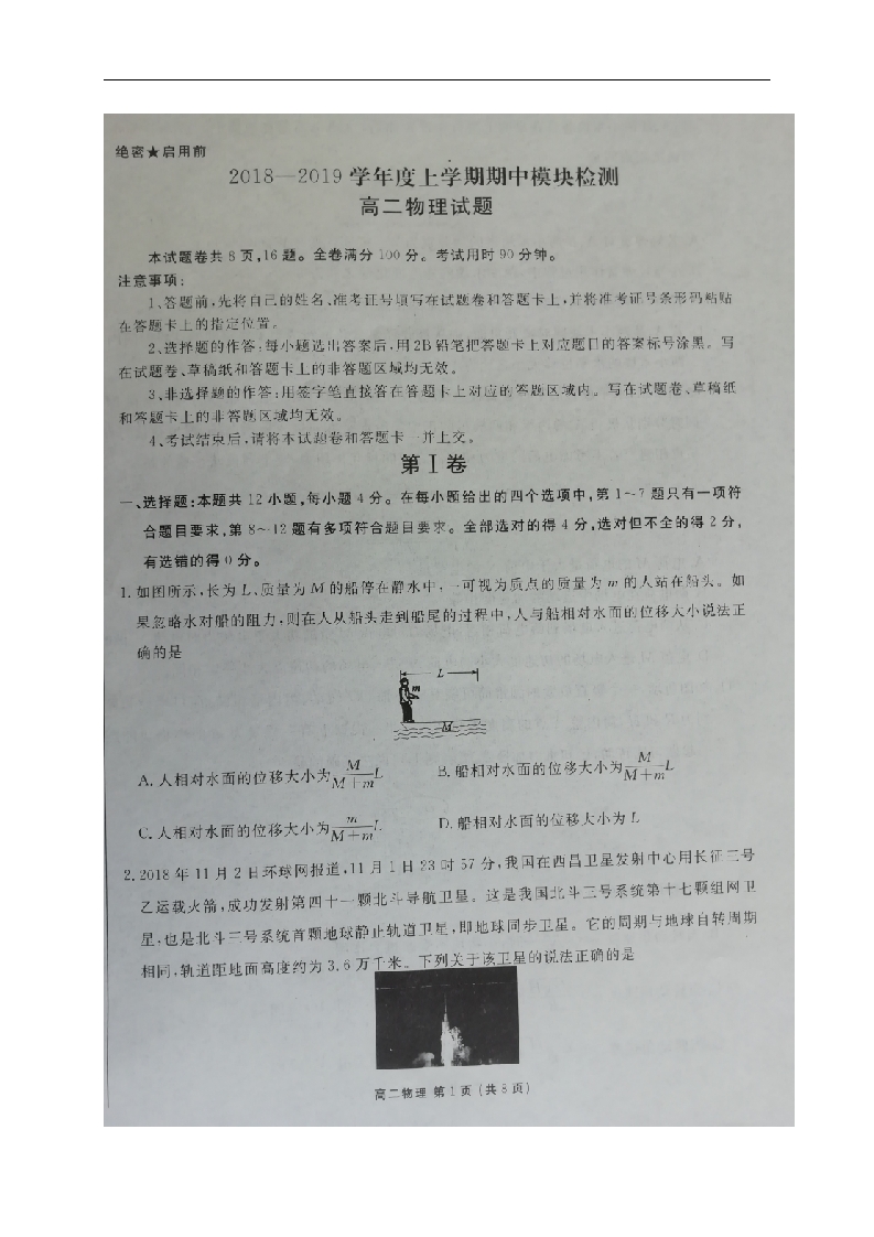 衡水中学2018-2019学年高二上学期期中考试物理试题(解析版)