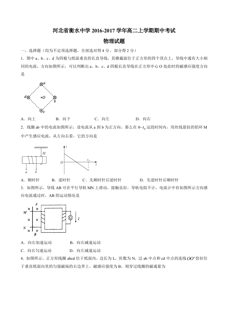 衡水中学2016-2017学年高二上学期期中考试物理试题解析(原卷版)
