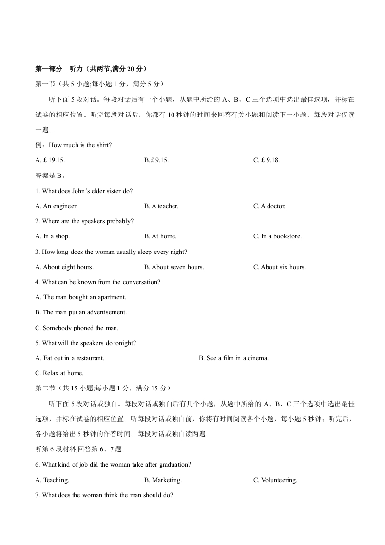 衡水中学2017-2018学年上学期高二年级三调考试英语试题(原卷版)