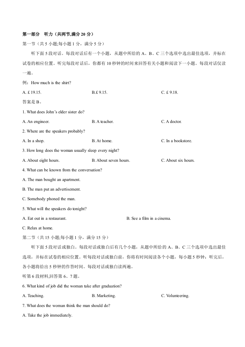 衡水中学2017-2018学年上学期高二年级三调考试英语试题(解析版)
