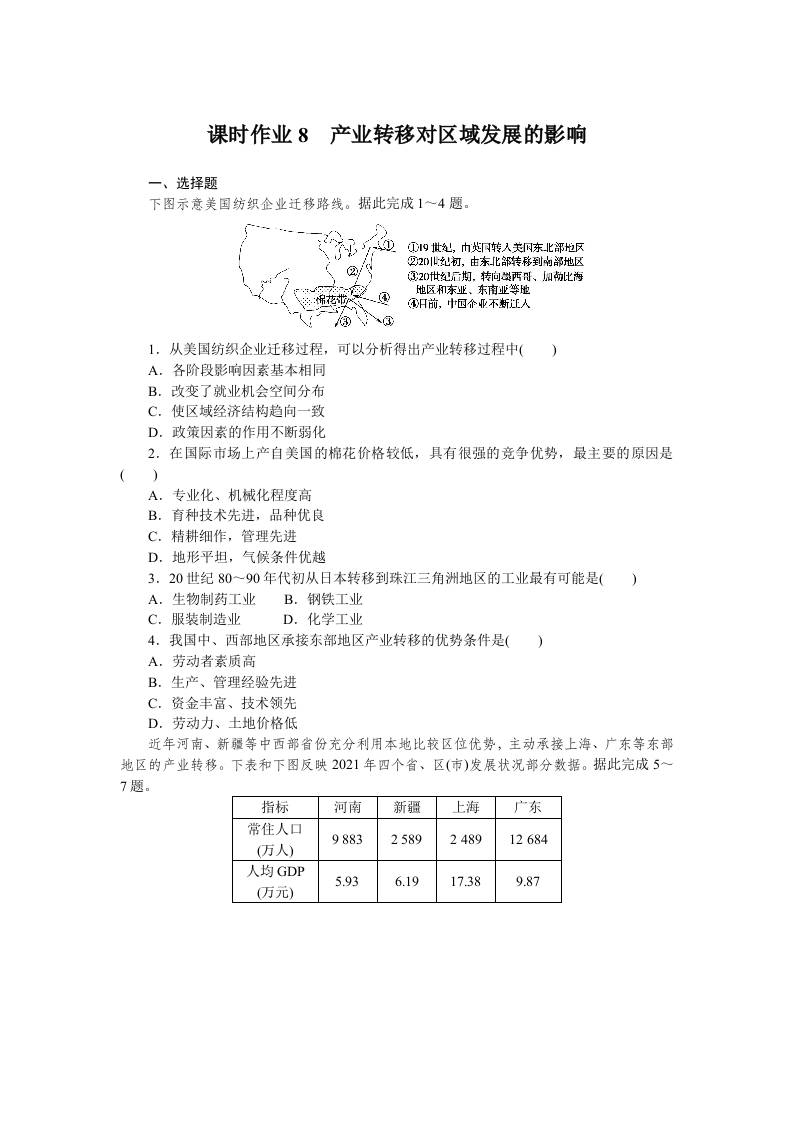 湘教版地理选修性必修2区域发展课时作业8