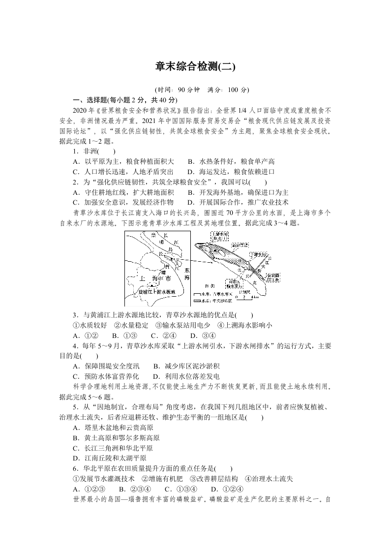湘教版地理选修性必修3资源环境与国家安全章末综合检测(二)