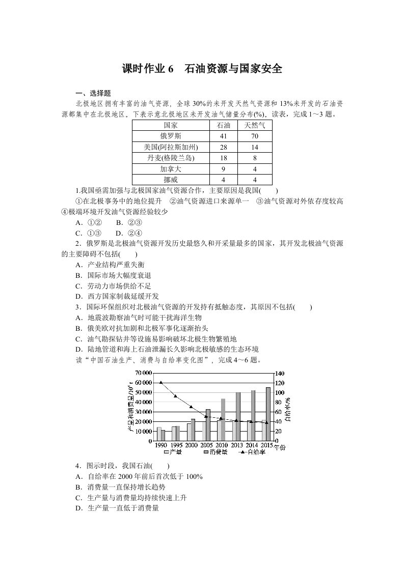 湘教版地理选修性必修3资源环境与国家安全课时作业6