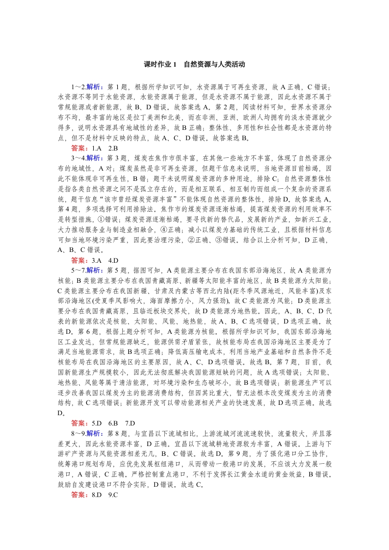 湘教版地理选修性必修3资源环境与国家安全详解答案