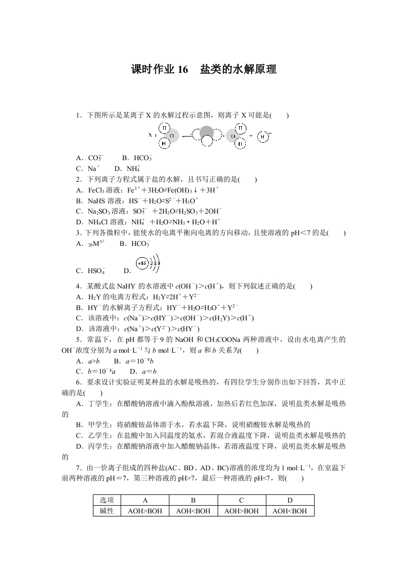 首页高中化学高一苏教版化学选择性必修1课时作业16