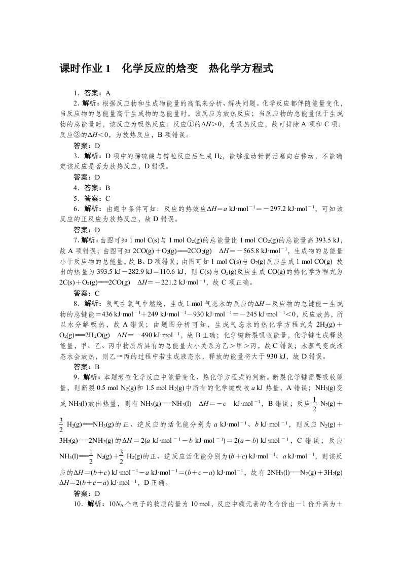 首页高中化学高一苏教版化学选择性必修1参考答案课时作业