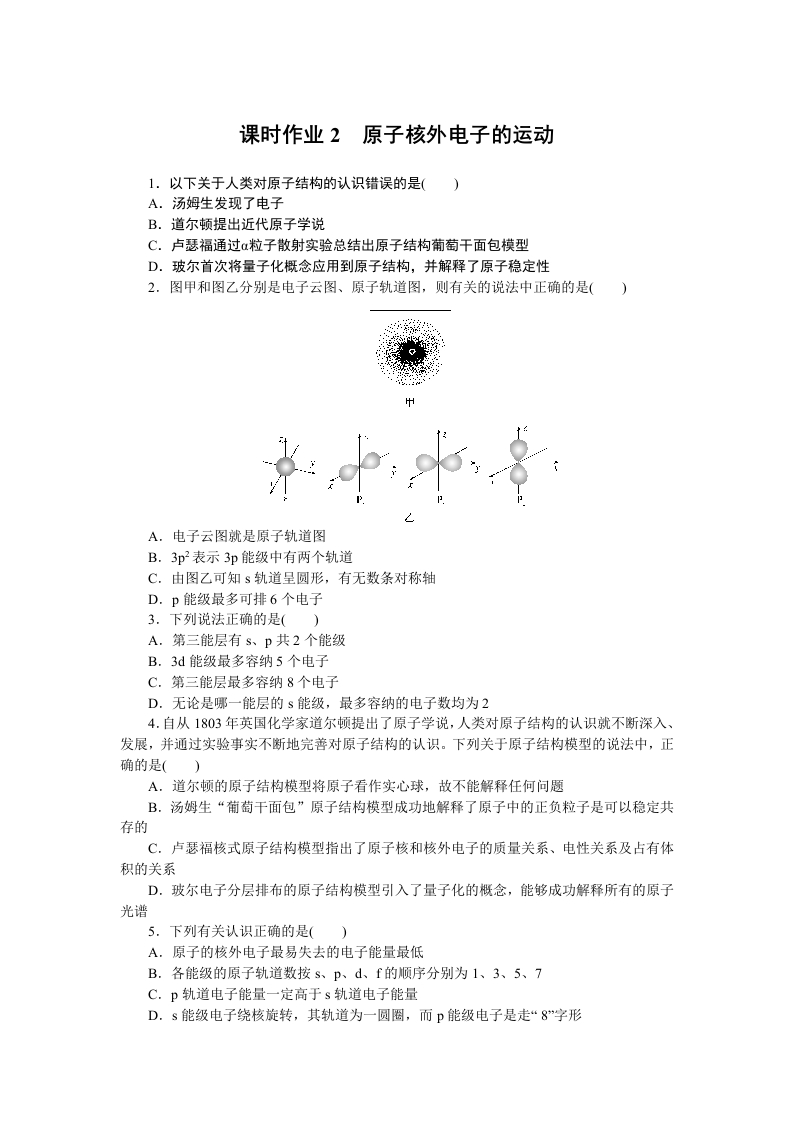 首页高中化学高二苏教版化学选择性必修2课时作业2