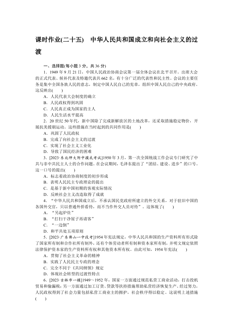 首页高中历史高一历史必修中外历史纲要(上)课时作业(二十五)