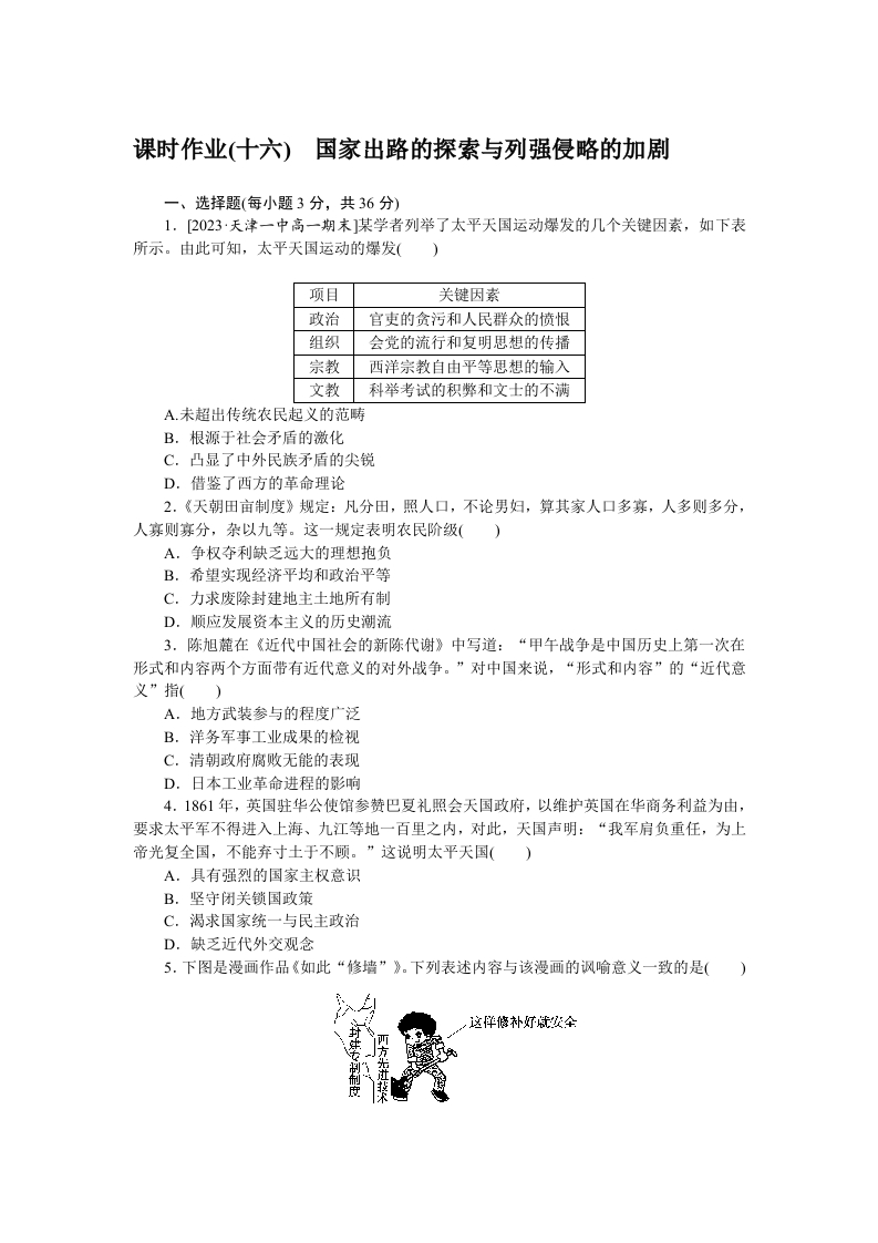 首页高中历史高一历史必修中外历史纲要(上)课时作业(十六)